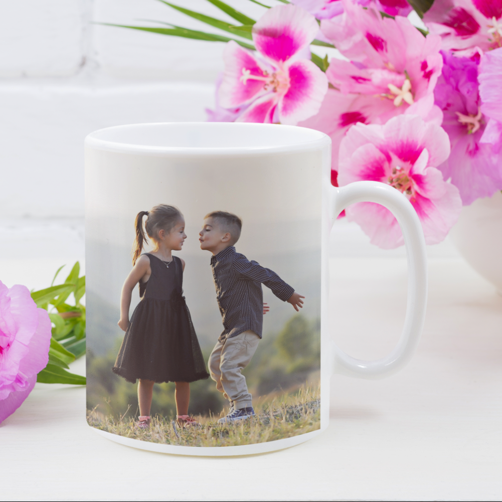 Panoramatryck där motivet går runt hela muggen. Ladda upp din bild eller designa muggen själv i vårt designerverktyg. Muggen tål maskindisk.